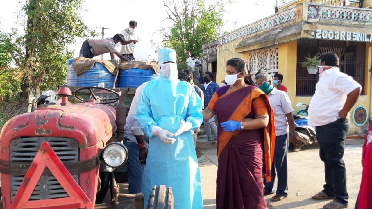 ஆனால் கொரோனா பயத்தால் தூய்மை பணியாளர்கள் கிருமி நாசினி தெளிக்க அஞ்சியதால், ரோஜா தானே களத்தில் இறங்கி பாதுகாப்பு கவசங்களுடன் கிருமி நாசினி தெளித்தார். அப்பகுதி முழுவதும் அவர் கிருமி நாசினி தெளித்தார். ரோஜாவின் இந்த செயலுக்கு பாராட்டுக்கள் குவிந்த வண்ணம் உள்ளன.