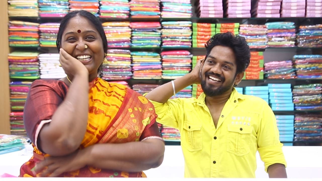 இவர்களைத் தொடர்ந்து தற்போது KPY வினோத் மற்றும் குக் வித் கோமாளி தீபா ஆகியோர் வருகை தந்து கலகலப்பாக பொங்கல் ஷாப்பிங் செய்துள்ளனர்.