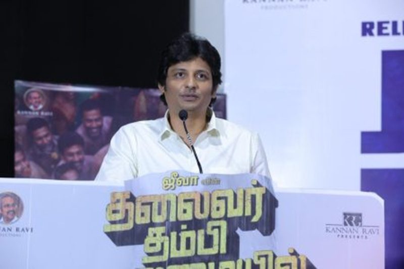 கதையின் நாயகனாக ஜீவா நடித்துள்ள ‘தலைவர் தம்பி தலைமையில்’ படம் ஜனவரி 15-ந்தேதி வெளியானது. இதில் தம்பி ராமையா, இளவரசு, பிரார்த்தனா, ஜெய்வந்த், ஜென்சன் திவாகர் உள்பட பலர் நடித்துள்ளனர். நிதேஷ் சகாதேவ் இயக்கிய இப்படத்தை கண்ணன் ரவி குழுமம் சார்பில் கண்ணன் ரவி தயாரித்துள்ளார். தீபக் ரவி இணை தயாரிப்பு செய்துள்ள இப்படம் வரவேற்பைப் பெற்றதை அடுத்து இதன் வெற்றிவிழா சென்னையில் நடைபெற்றது. விழாவில் ஜீவா பேசும்போது,