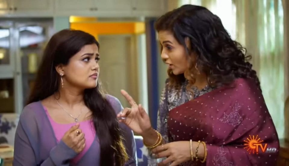 சூர்யா இருக்கிற வரைக்கும் நந்தினியை யாராலும் துரத்த முடியாது என்று மாதவி சொல்லுகிறார். வீட்டுக்குள்ள அவளைப் பார்த்தாலே எனக்கு உடம்புல எரியுது முதல்ல அவளை வீட்டிலிருந்து துரத்து என்று வெளியில் தள்ளிவிட சூர்யா அவரை எழுப்புகிறார்.