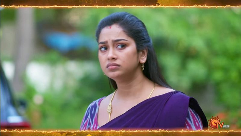 கல்யாணம் காய்கறிகளை வாங்கிக் கொண்டு வீட்டுக்கு வர நந்தினி கிச்சனில் இருக்கிறார். கல்யாணம் உள்ளே வந்தவுடன் சுந்தரவல்லி கூப்பிடுகிறார். பிறகு சுந்தரவல்லி பையை திறந்து பார்க்க அதில் இருக்கும் ஒரு தக்காளியை எடுத்து இப்படி தான் தக்காளி வாங்குவியா என்று கேட்டு திட்டிவிட்டு சென்று விடுகிறார். நல்லவேளை நான் சொன்னதை நீங்க வாங்கிட்டு வரல என்று சொல்லுகிறார். அதுதான் இல்ல நீ சொன்னதை நான் வாங்கிட்டு வந்துட்டேன் என சொல்லி ஸ்லேட் மற்றும் சாக்பீஸ் கொடுக்கிறார். ரொம்ப சந்தோஷம் அண்ணே என்று சொல்ல என்னமா பண்ண போற என்று கேட்க சொல்கிறேன் என சொல்லி நந்தினி ஒரு இடத்தில் உட்கார்ந்து பலகையில் சூர்யா சார் நான் இங்கதான் இருக்கேன் என்று பலகையில் எழுதிவிட்டு நான் எங்கேயும் போகல சார் யார் என்ன சொன்னாலும் எங்கேயும் போக மாட்டேன் என்று சொல்லுகிறார்.