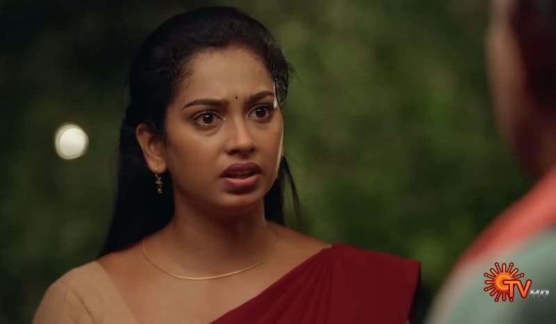 நேற்று ஒளிபரப்பாகிய எபிசோடில் தோப்பில் திருடர்கள் நுழைந்து தேங்காயை பறிக்க சத்தம் கேட்டு நந்தினி வெளியே வருகிறார். அவர் வந்த நேரம் பார்த்து திருடர்கள் மறைந்து கொள்ள திரும்பி சென்று விடுகிறார்.