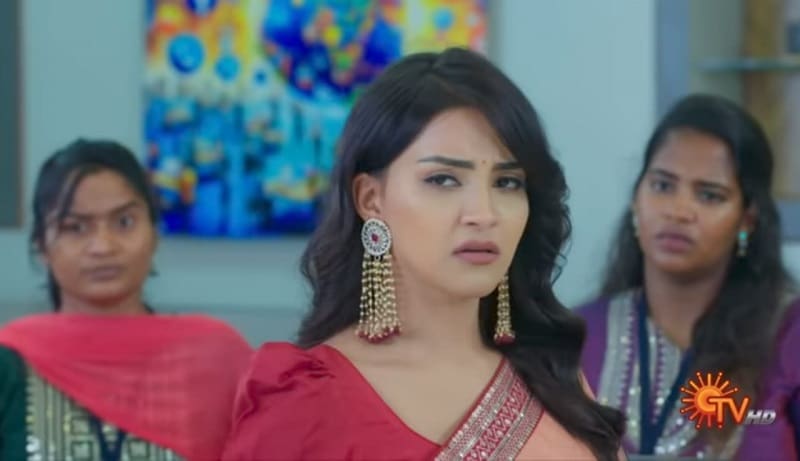 பிறகு அர்ச்சனா உள்ளே வர யாரும் கண்டுகொள்ளாமல் இருக்கின்றனர். உடனே அனைவரையும் கவனிக்க சொல்லி இதுக்கப்புறம் சுந்தரவல்லி மேடம் இருந்த இடத்துல நான் தான் இருப்பேன் நான் யார வேணாலும் வேலையை விட்டு தூக்கலாம் இல்ல சேக்கலாம் என கேட்காமல் சின்ன விஷயம் கூட நடக்கக்கூடாது என்று சொல்ல, நான் பேசிக்கிட்டே இருக்கேன் நீங்க அமைதியா இருக்கீங்க என்று சொல்ல அப்ப யாரும் உங்களை மதிக்கலன்னு அர்த்தம் என்று கிண்டல் அடிக்கின்றனர். பிறகு கம்பெனியில் வேலை செய்யும் ஒருவர் வந்து சுந்தரவல்லி ரூமை காட்டி அர்ச்சனாவை அங்கு அழைத்துச் சென்று விடுகிறார். அர்ச்சனா டென்ஷனாக ரூமில் இருக்க வெளியில் பட்டாசு சத்தம் கேட்க வெளியில் வந்து பார்க்க நந்தினியும் சூர்யாவும் வருகின்றனர். அவர்களுக்கு மாலை மரியாதை உடன் வரவேற்பு கிடைத்த அர்ச்சனா கடுப்பாகிறார்.