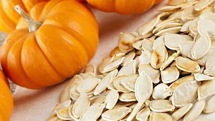 பூசணி விதைகள் அதிக மருத்துவக் குணங்களை கொண்டுள்ளது. மேலும் அவற்றில் பொட்டாசியம், வைட்டமின் பி 2 மற்றும் ஃபோலேட் ஆகியவை உள்ளன.