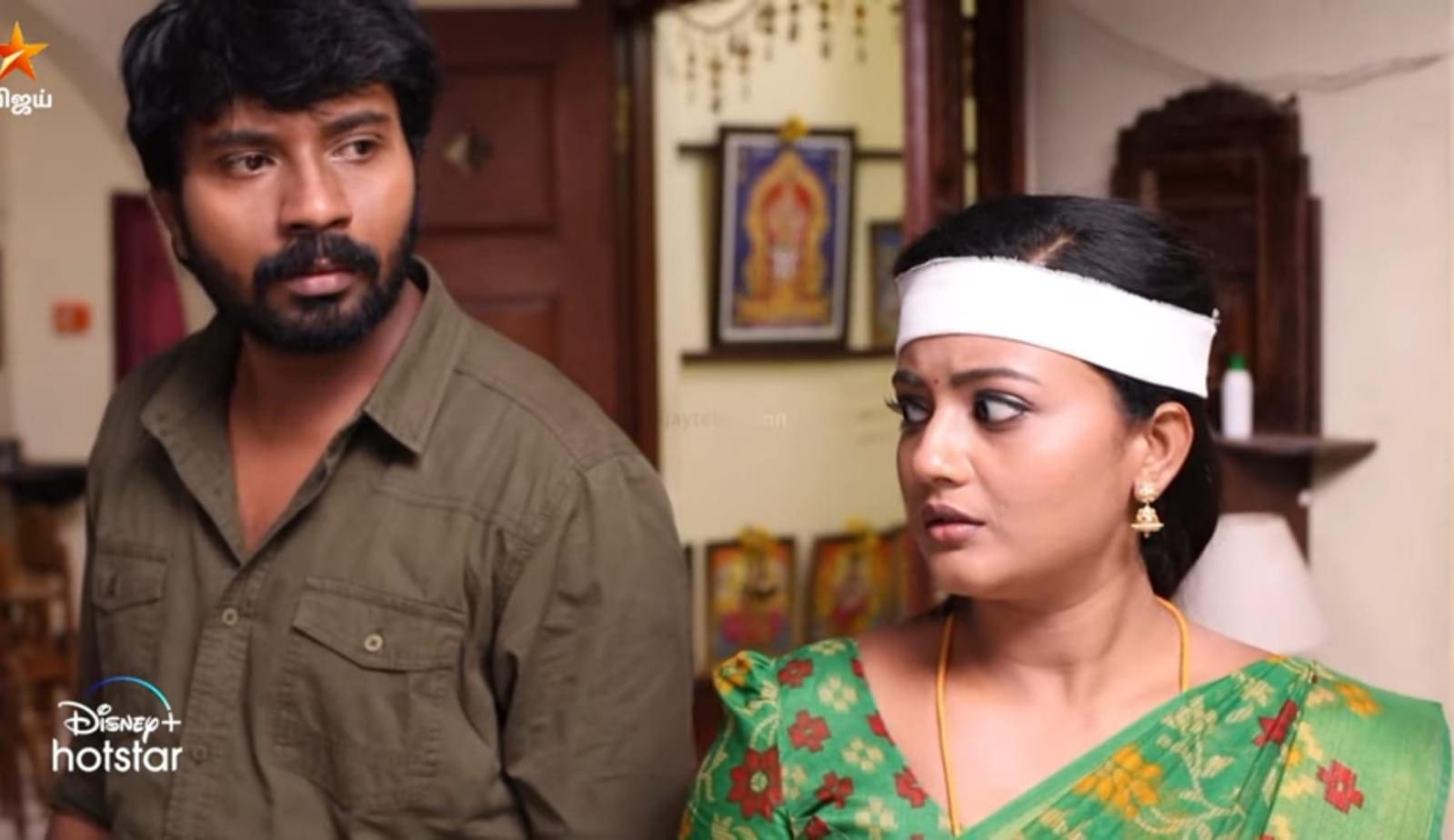 ரவி மற்றும் ஸ்ருதி வீட்டுக்கு வர மீனா தலையில் கட்டு போட்டு இருப்பதை பார்த்து அதிர்ச்சி அடைந்து என்னாச்சு என்று கேட்கின்றனர். மீனா என்ன சொல்வதென புரியாமல் இருக்க உடனே முத்து வந்து வாழைப்பழம் தோல் வழுக்கி விழுந்ததாக சொல்கிறார் இதனை கவனித்த அண்ணாமலை என்னிடம் வண்டியிலிருந்து விழுந்ததாக சொன்ன இப்போ தோல் வலிக்கு விழுந்துட்டேன்னு சொல்ற என்ன ஆச்சு ஒழுங்கா சொல்லு என்று கேட்க உடனே அவர் மீனாவிடம் நீ சொல்லுமா என்று சொல்கிறார். முதலில் கீழே விழுந்துட்டேன் என்று சொல்லும் மீனா சுருதி வண்டியில் இருந்தால் தோல்வழுக்கியா என்று கேட்கிறார்.