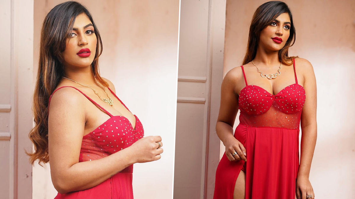 ரெட் கலர் உடையில் ஓவர் கவர்ச்சி காட்டி புகைப்படங்களை வெளியிட்டு இணையத்தை சூடாக்கி உள்ளார்.